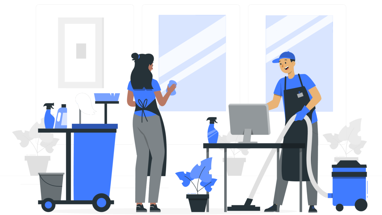 勤務先の清掃現場で汗をかきながら仕事をしていると、